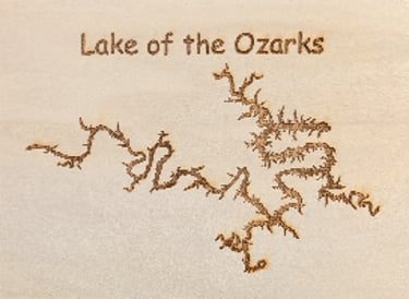 These 7x5 laser‑engraved lake plaques offer a simple, timeless way to celebrate the Ozarks’ most beloved waters. Each piece is crafted from the same 1/8" Basswood plywood used in your photo plaques and finished with Tung oil for a warm, natural sheen. These plaques are intentionally clean and straightforward—no customization, no added text—just the lake name at the top and a crisp, detailed engraving of the lake’s profile across the bottom.