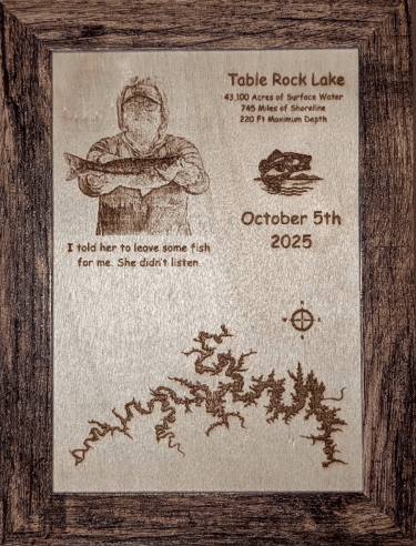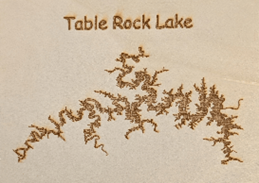 This series includes Table Rock Lake, Beaver Lake, Bull Shoals Lake, Stockton Lake, Truman Lake, and Lake of the Ozarks, each rendered with the same precision and rustic character your work is known for. They’re designed to fit any standard 7x5 frame, allowing customers to choose a style that matches their home, cabin, or office décor. Priced at $10 and is sold without a frame, these plaques make great gifts, souvenirs, or additions to any lake lover’s wall.